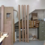 Constructing the stepped corner posts and then adding the ply panelling was not too difficult. Working around and standing the bits up became slightly more difficult as the construction grew in weight.