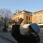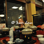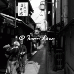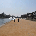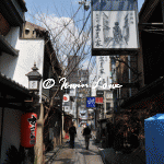 The hill gardens of Maruyamacho were strangely deserted. Many blue tarpaulins had been laid out signifying a bagsed position (presumably for upcoming cherry blossom parties). The feeling in the middle of the day was of a carnival that was about to happen. Or had happened. A minor discovery was Shijo Dori, the main street of shopping action in Gion.