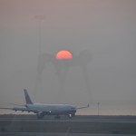 The air quality had not cleared, but did give an opportunity to snap some surreal sunset shots. The gantry reflections in the windows appear quite post apocalyptic anime