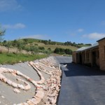 There’s still plenty of water about after the recent deluges of rain. We happened to notice a pair of nesting swans return after the several year absence of water. Our rockbank is also starting to take shape.