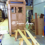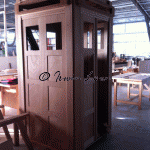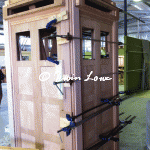 I obtained the glass at Essendon Glass which was a very simple process. Googling various TARDIS constructors would have you believe that the exact glass type is difficult & expensive to procure. The bobbly glass (to my eye anyways) looked very similar to translucent bathroom glass, so that’s what I bought. The bottom left and right panes of each window (in various incarnations) is a slightly different design giving a “T” shaed appearance which I don’t mind.