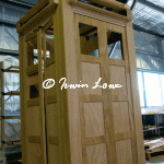 A solid week at TAFE gave me the opportunity to make some progress on the TARDIS. The entry doors had a strap of timber attached which finishes them (except for the phone door which I won’t complete until after painting, and the repair of the phone door rear panel).