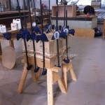 A component of my course this year is to create something with curved surfaces using solid timber. To that end, my cabinet doors will be of curved design. I have created a multi-sheet MDF panel with blackwood veneers.