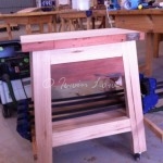 I happened to visit Anna’s folks and noticed a book press which Anna’s dad had scrounged up. Hmm, rapid change in present direction then and the decision to build a stand for the press was born. I had some pieces of Vic Ash left over from previous projects and as yet unused for others so I thought I’d replicate a simple steel framed equipment stand.