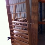 Actual blackwood ply is available but over $250 a sheet. Not unaffordable, but extravagant for a structural and likely unseen component. So I settled on a sheet of regular construction ply at one tenth of the cost. Teacher Leon helped out with his air compressor bradder, and I learnt the art of fixing such a construction square. We used spacers for the shelves and bradded those from the ply also.