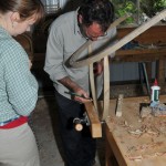 On to the chair bottom, or perhaps the place where one is to place one’s bottom. A hollow is shaped in the camphor laurel base using various means. Anna approves of the use of a noxious weed tree.