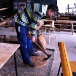 Firstly a technique of swinging an adze towards oneself so as to rough out the shape, roughly chalk lined in. The adze is like an axe but with the blade being perpendicular to instead of in line with the handle. The swing is critical with the cutting on the downstroke with feet wide apart. It’s not for no reason this device is also called a shin splitter.