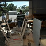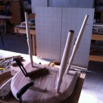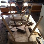 I’d made my tenons quite tight and due to the rapidly diminishing hours left (refer exam flash back sentiment) was starting to tension up much like the legs stretchers. Tight being better than loose for a chair leg. We used a glue made of cow hide which stunk like death to a city boy like me. Wally the dog however found the taste quite satisfactory and proceeded to clean up my over glues.
