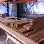 I’ll start on the left hand cabinet for my desk which will have curved manufactured board fronts. I’ll press thin sheets of MDF in a curved jig to get the shape and then I’ll then laminate the curvy thing to make it look like the solid blackwood I’m working with.