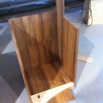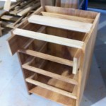 Using the same curve from the drawer front jig, I’ve made up a template for the right hand cabinet door but will leave the base and top uncut for now until I have a better idea of what fits where.