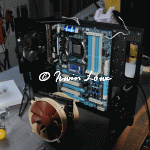 Unfortunately, even though the fan fitted, it caused 2 issues: firstly the size of the 12cm heatsink made contact with the RAM heatsinks (I had decided to go for 12GB of RAM in 3x 2x 2GB). Ok, simply workaround: live with 8GB for now and contemplate later. Second issue was that the case lid for the motherboard section was hinged and therefore did not close for the size of the heatsink/fan.