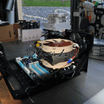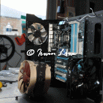 What’s a HTPC build without a hurdle or twenty? One of my concerns with a HTPC is reducing the heat as much as possibly whilst maintaining a low noise level. For the CPU, this means a whopping big heat-pipe finned heat-sink arrangement with PWM (or resistor throttled) fan.