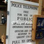 I lined up the centre of the structure gaps, got the clear liquid-nails ready and took a deep breath. Somehow, I imagined that the centre of the signs themselves were in the mid of the “Public Call” bit. Because “police” “box” are different lengths, the centre of the sign is weighted towards the left “P” of “Public”. Good thing I decided to start on the rear panel. Having used the glue several times over a few weeks now, It was quite claggy- slightly beneficial for me as runny would have been worse.
